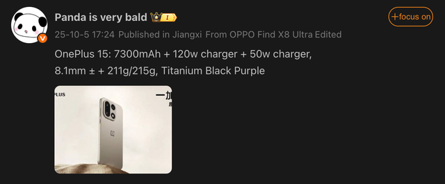 Thông tin về OnePlus 15 được tiết lộ trên mạng xã hội Weibo.